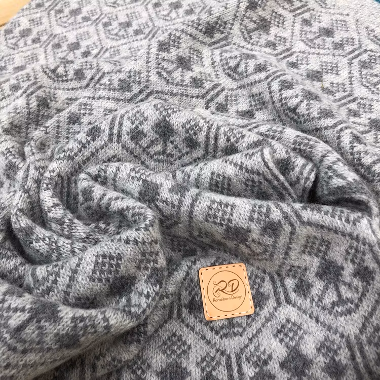 Filt stickad på handstickningsmaskin i 100% mjuk ull. Den är sedan lätt tovad i tvättmaskin, vilket gör filten mjuk och följsam.